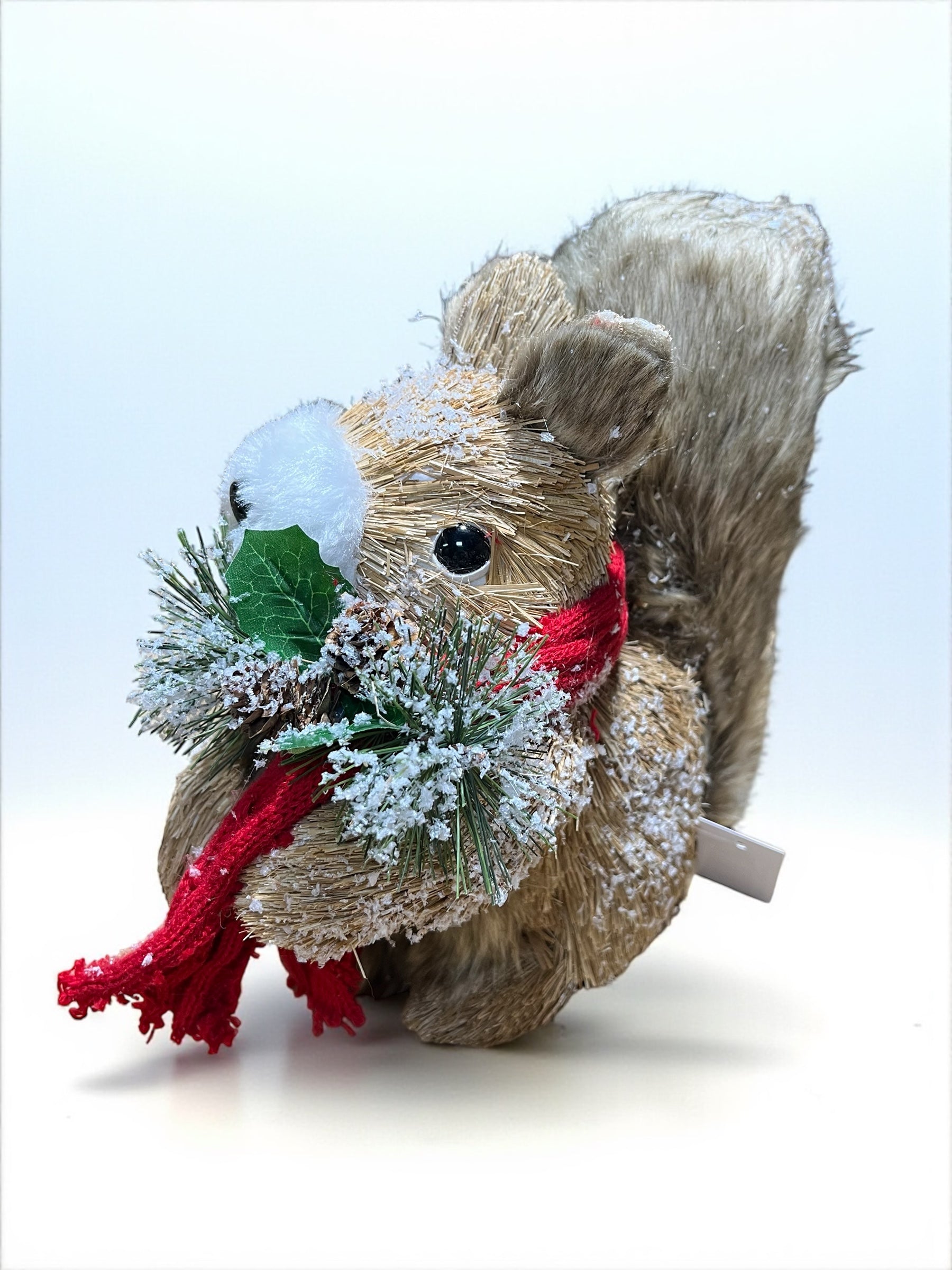 Ardilla café con berry, piña y bufanda roja 25cm x 24cm x 11cm (SKD001)