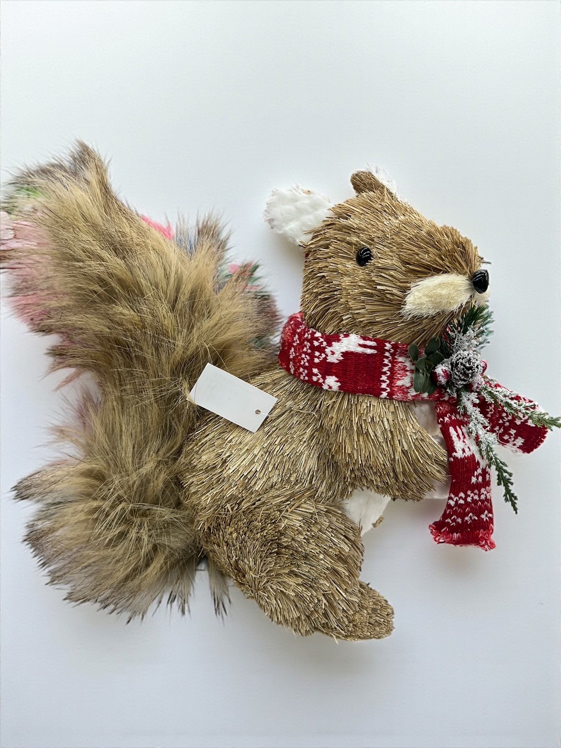 Ardilla café con bufanda roja y piña 32cm x 32cm x 18cm (MPD00821)