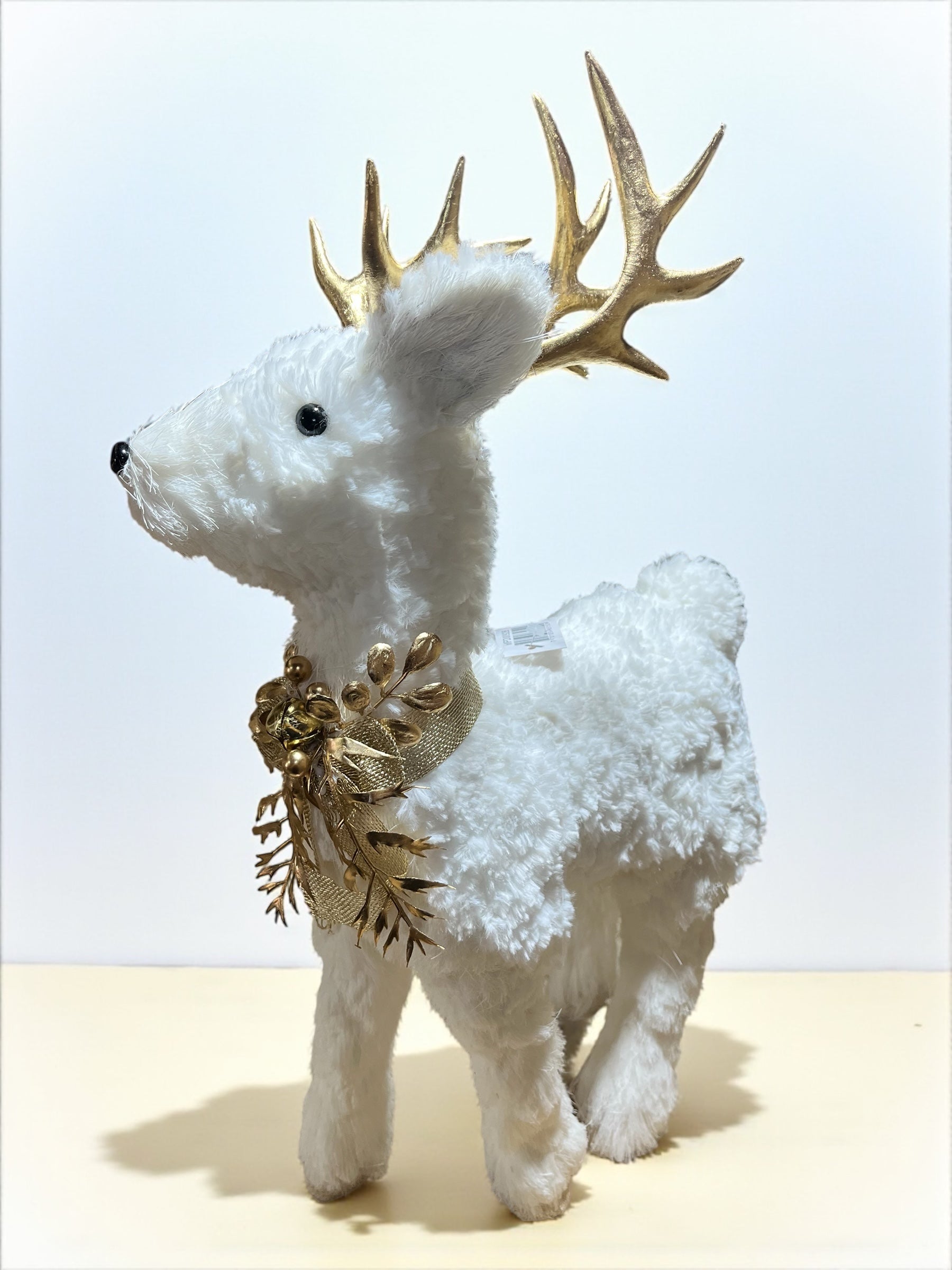 Ciervo blanco y dorado con moño dorado 49cm x 29cm x 15cm (MPD00928)