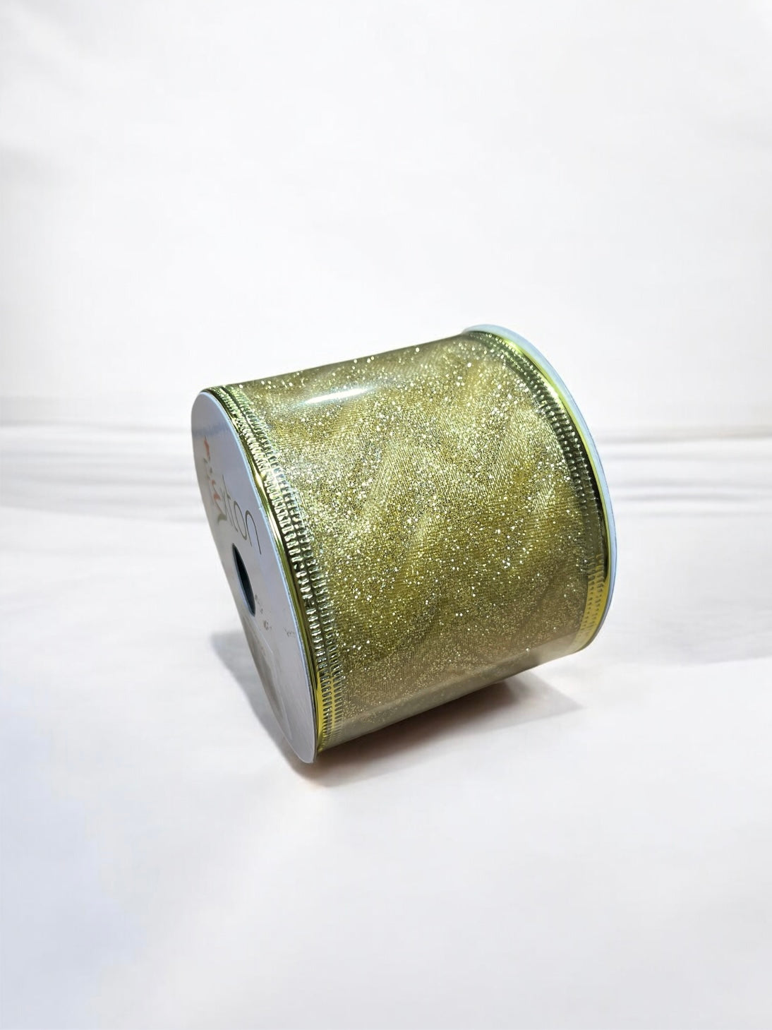 Cinta navideña alambrada dorada con grabado líneas diagonales 6.5cm x 9.15m (TCH01793GG)