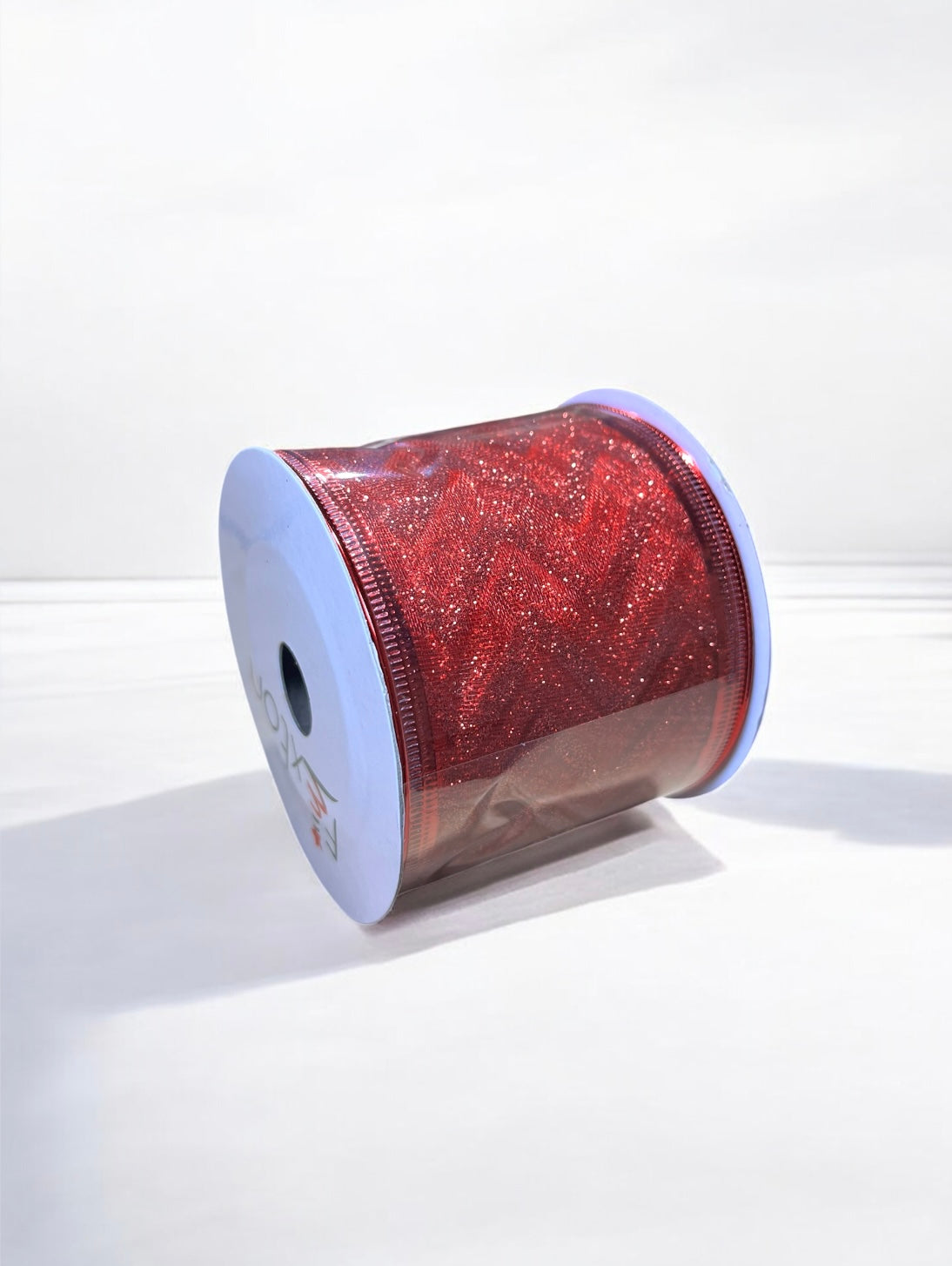 Cinta navideña alambrada roja con grabado líneas diagonales 6.5cm x 9.15m (TCH01793RR)