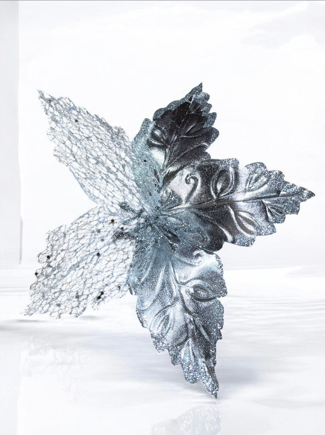 Flor artificial de 5 pétalos plateado metalizado 30cm (FLM00267MtS) 429