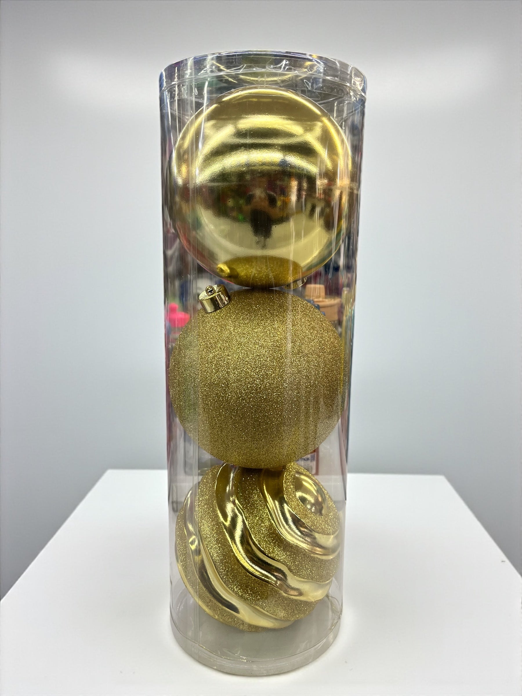 Tarro de 3 bolas navideñas doradas 15cm (BHK00226G(G))